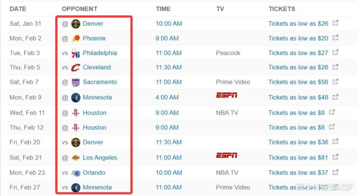但快船还有一道坎儿那就是接下来的12场比赛,大家能看到除了2月7日VS国王之外,快船分别要打:掘金(2)、太阳、费城、骑士、森林狼(2)、火箭(2)、湖人、魔术,如果这12场比赛快船能拿下其中一半的胜利,那么接下来快船的赛程会非常容易。